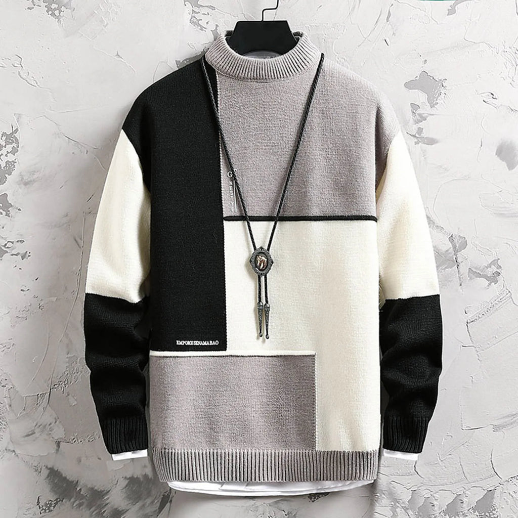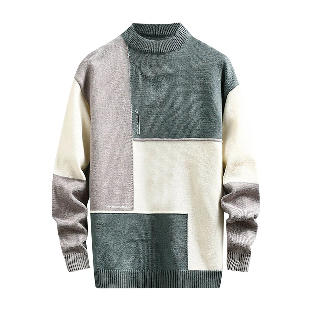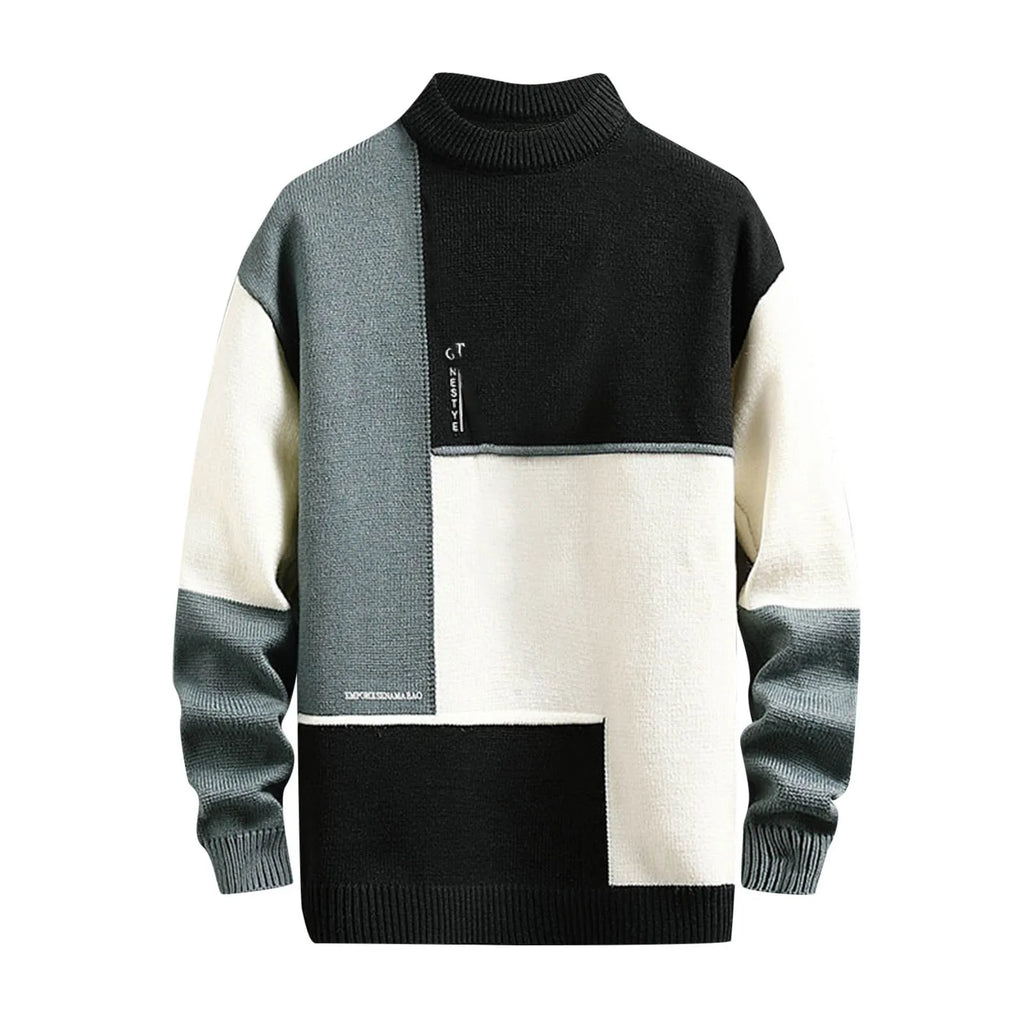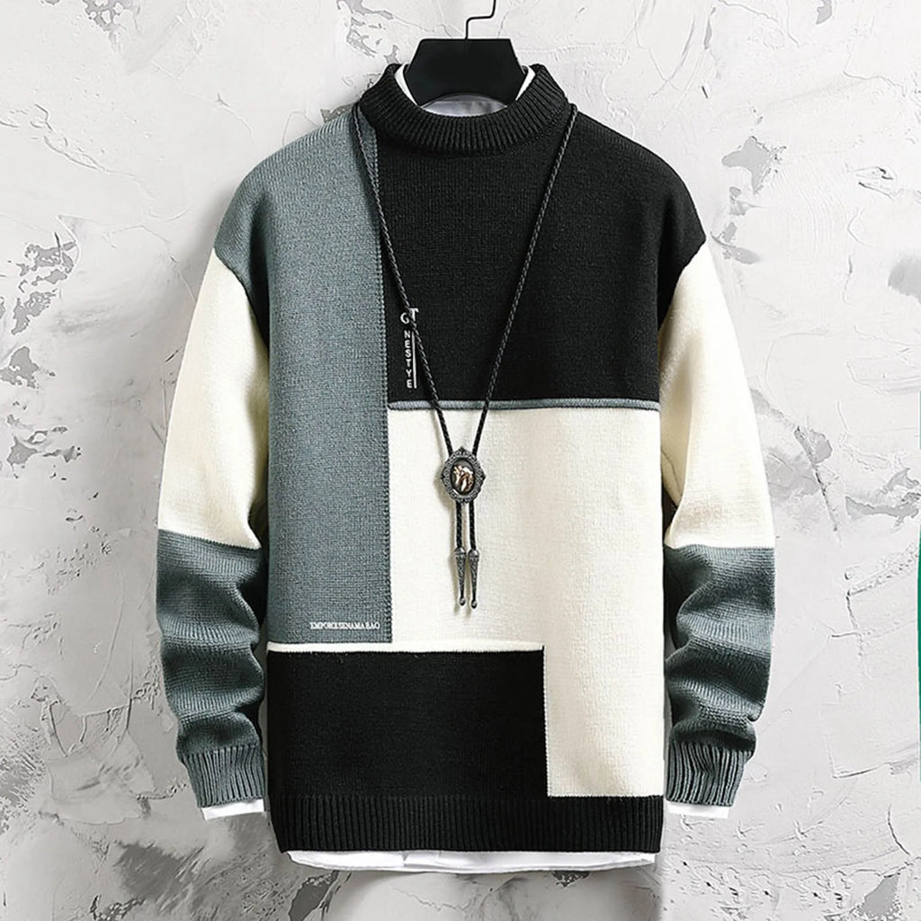 Mens Casual Fashion Trend Semi Turtleneck Long Sleeved Sweater