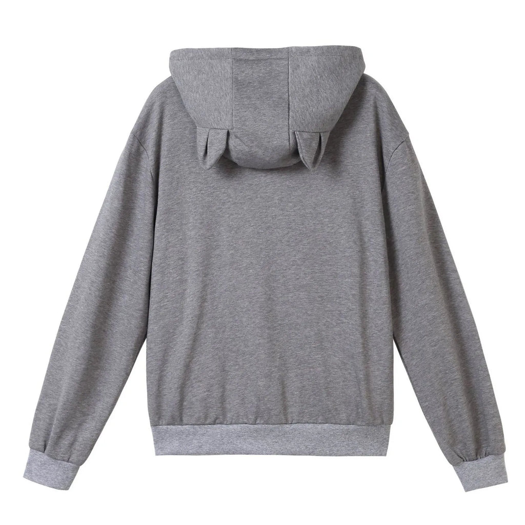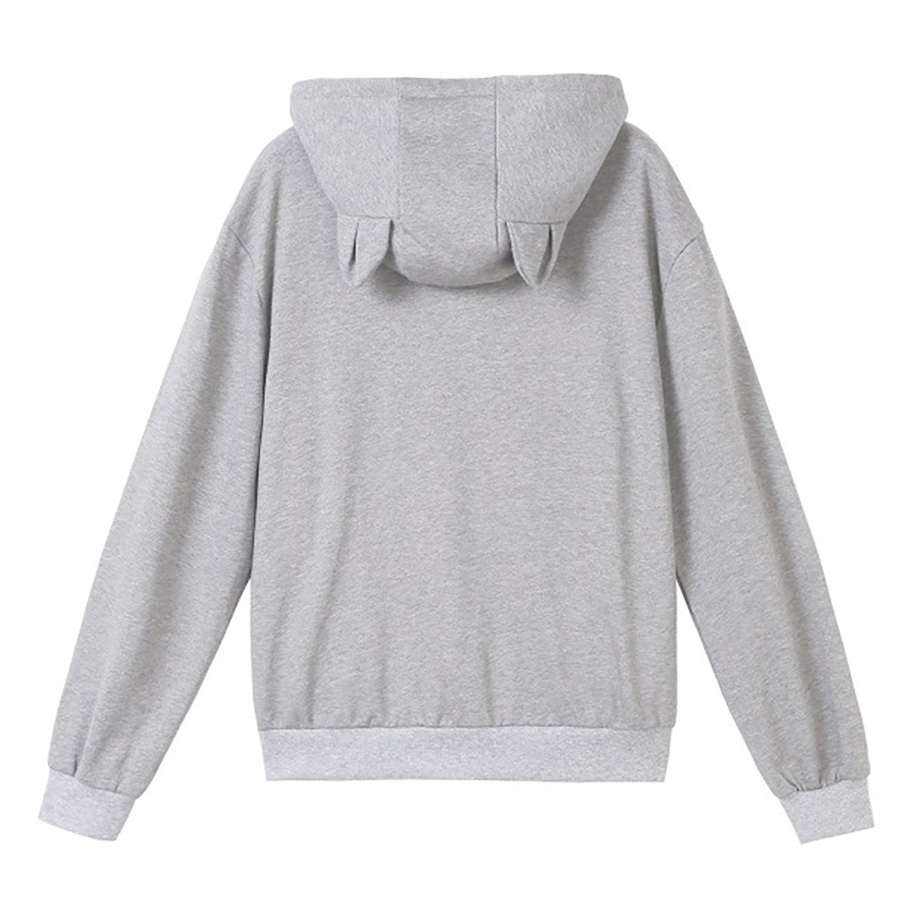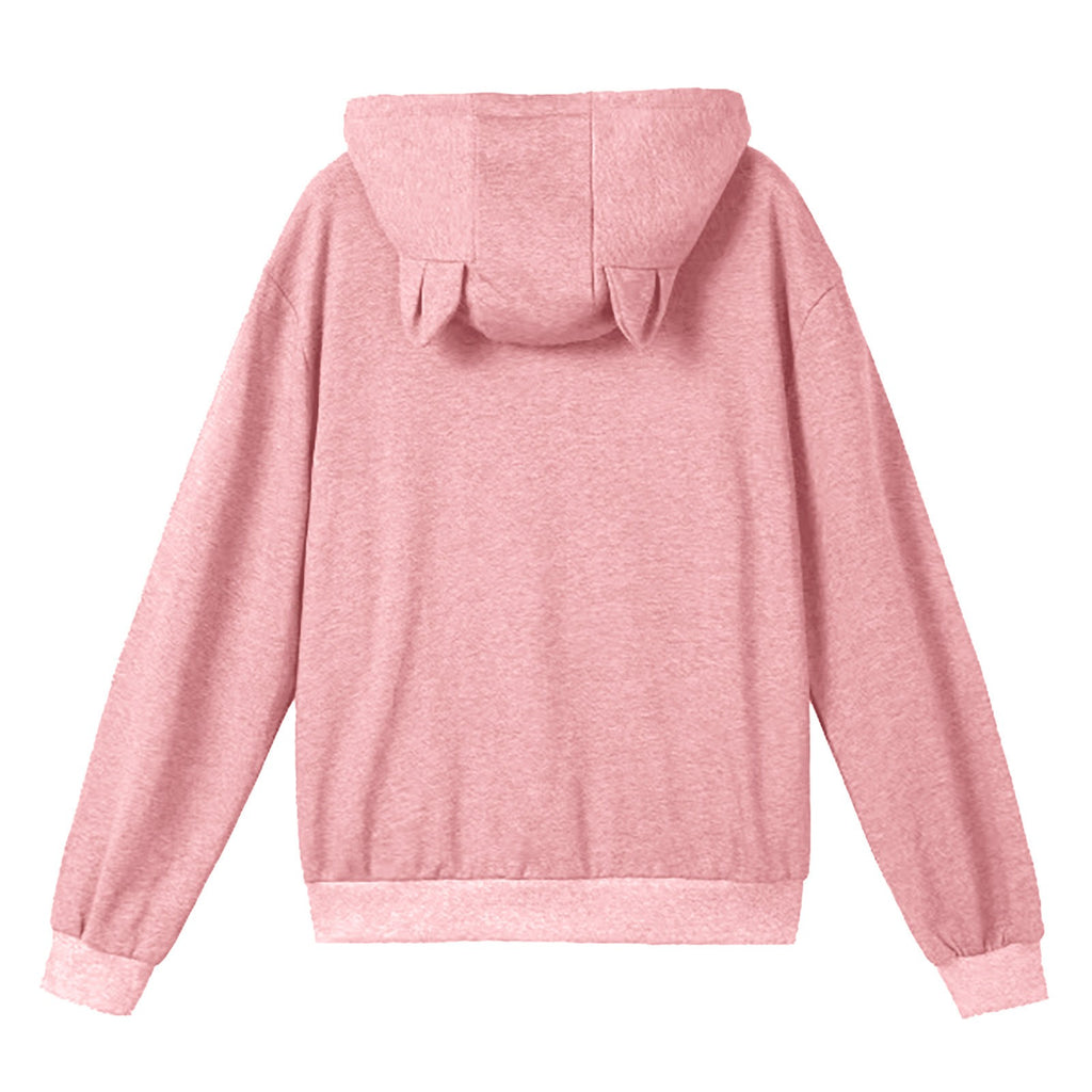 Women's Solid Sport Casual Funny Cat Ear Zipper Mesh Large Pocket Hoodie